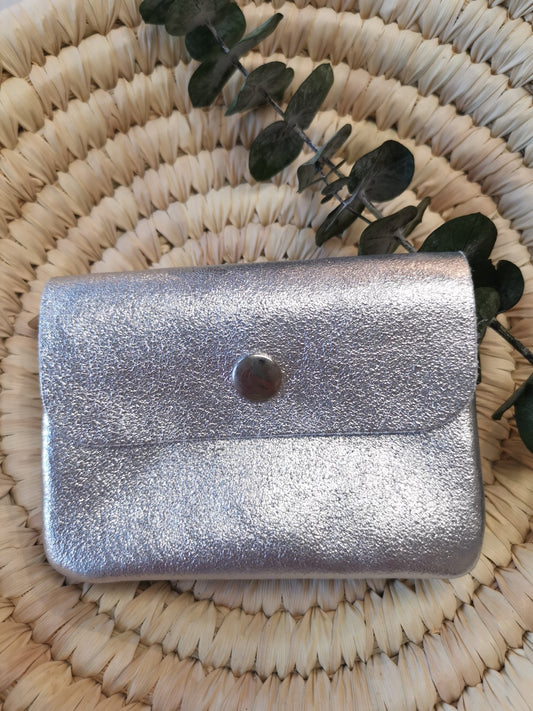 Geldbörse Portemonnaie 100 % Leder silber metallic